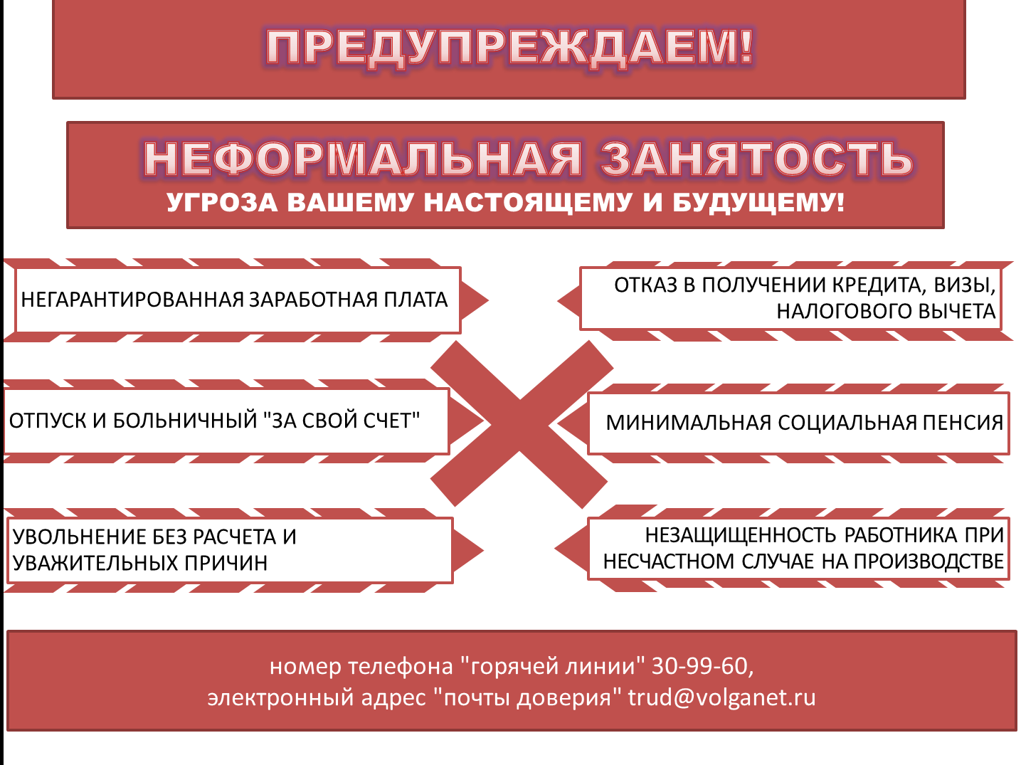 — невозможность спланировать доходы, так как при неофициальном трудоустройстве у работника нет законных прав и гарантий сохранения работы и получения заработной платы;