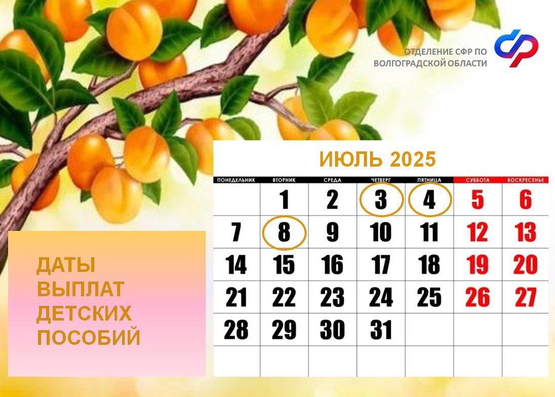 Детские пособия в июле: график выплат Отделением СФР по Волгоградской области